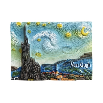 ที่กำหนดเองทำเรซิ่นยุโรป Ins สร้างสรรค์โลกที่มีชื่อเสียงภาพวาดแวนโก๊ะชุด Starry ดอกทานตะวัน3D เรซินแม่เหล็กตู้เย็น